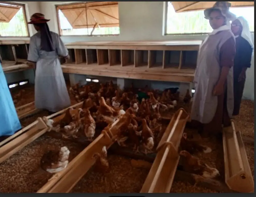 => pour les poules: achat d'un appareil broyeur de grains, groupe électrogène, formation des soeurs à la gestion d'un poulailler
